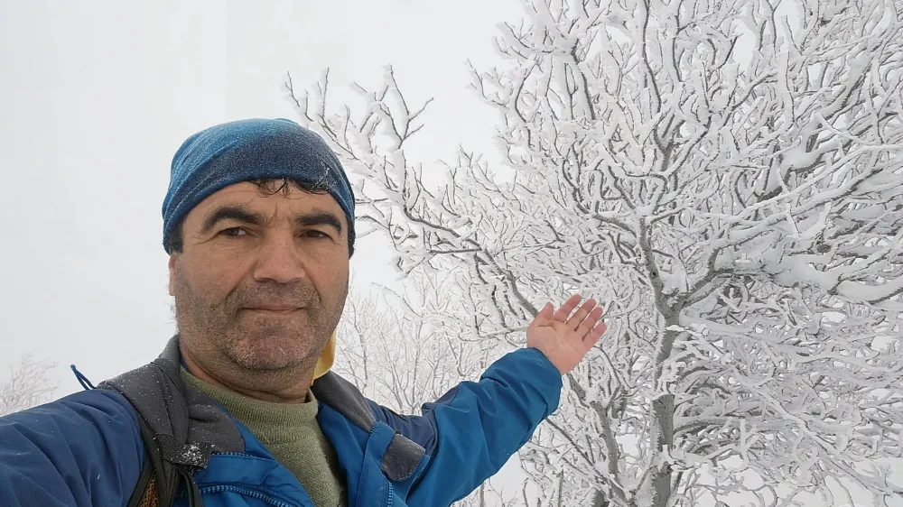 Derik İlçesinde karlı-sisli havaya rağmen tek başına ilçenin en yüksek bin 350 rakımlı Turcel Dağına tırmanış gerçekleştirdi.