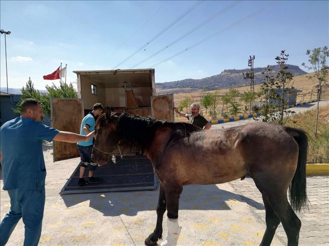 Nusaybin ilçesinde yaralı olarak Mardin Büyükşehir Belediyesi Rehabilitasyon Merkezi´ne getirilen at, İzmir´e sevk edildi.