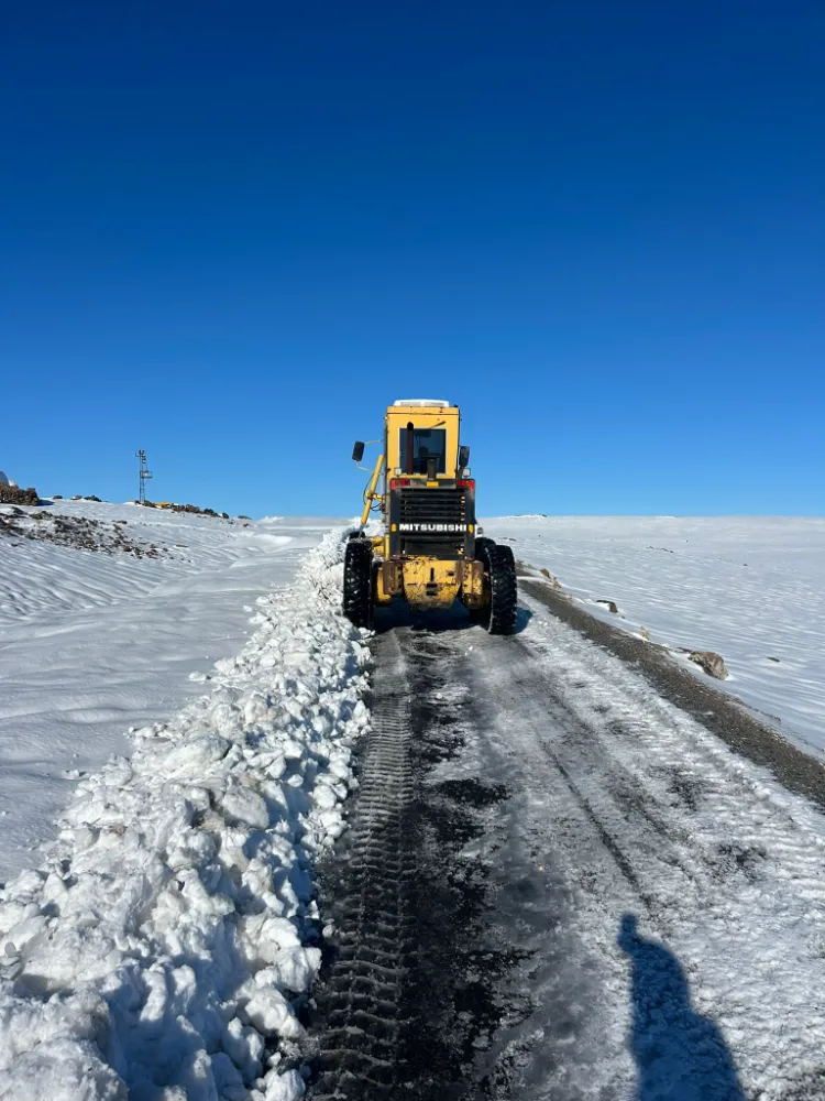 Derik'te kar nedeniyle kapanan yol açma çalışmaları devam ediyor