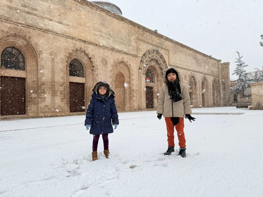 Kar yağışı, uzun bir aradan sonra Kızıltepe’de hem sevinç hem de kartpostallık görüntüler oluşturdu.