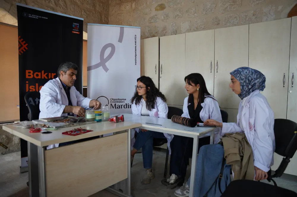Kültür ve Turizm Bakanlığı tarafından düzenlenen Türkiye Kültür Yolu Festivali kapsamında Mardin’de gerçekleştirilen etkinliklerde, Mardin Olgunlaşma Enstitüsü’nün geleneksel el sanatlarına yönelik atölye çalışmaları ziyaretçilerden yoğun ilgi gördü.