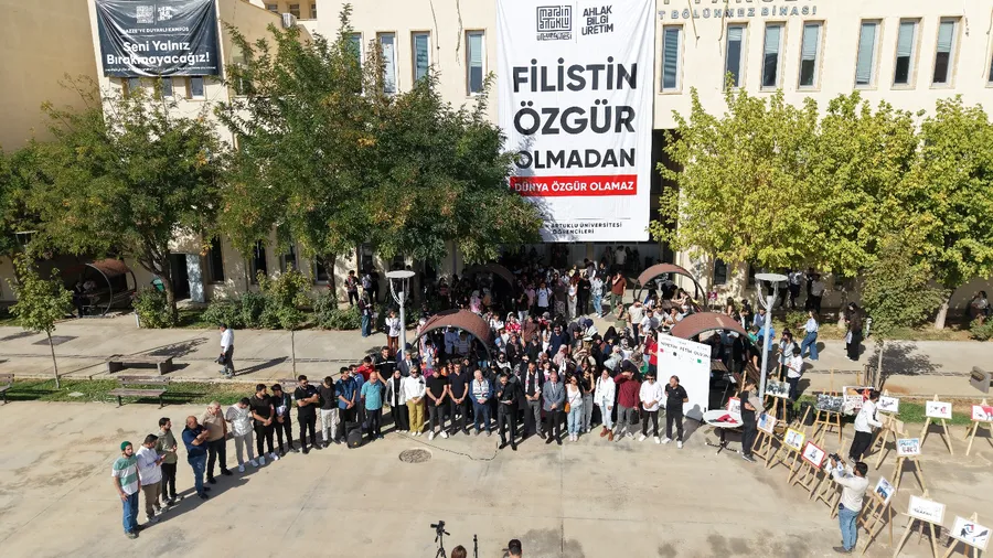 Mardin Artuklu Üniversitesi öğrencileri kampüste bir araya gelerek ortak bir basın açıklaması yaptı. Öğrenciler, Gazze’de insanlık tarihinin kara sayfalarından biri haline gelen soykırımın ikinci yıldönümünde sessiz kalmayacaklarını yüksek sesle dile getirdiler.